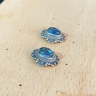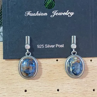 Elegantes pendientes con poste de plata 925 y piedra Pietersite. Diseño ovalado con borde texturizado. 💙 Pietersite natural 7×9mm ✨ La colgante es de plata 925. 🌈 Sello de metal: plata de ley s925 maciza. 💝 #natural #pendientes #silver #pietersite #plata #earrings #pietersita