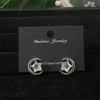 Elegantes pendientes con diseño de luna y estrella, adornados con cuarzo blanco. ❤️ Cuarzo blanco natural 9mm ✨✨ Los ganchos para las orejas son de plata de ley 925. 💝