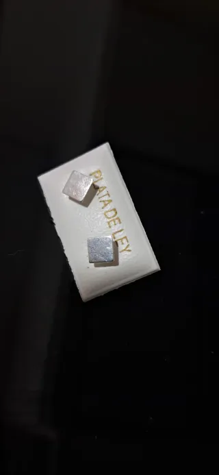 Par de pendientes pequeños con forma cuadrada. - Diseño minimalista. - Acabado brillante.