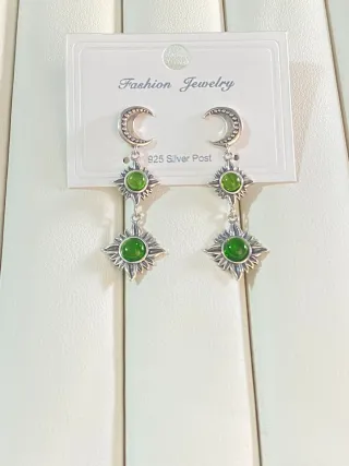 Pendientes con un diseño celestial único. 💛 Diópsido de alta calidad natural ✨ La Pendientes es de plata 925. 💟 Sello de metal: plata de ley s925 maciza. 💝 #natural #pendientes #silver #diopsido #plata #earrings #diopside