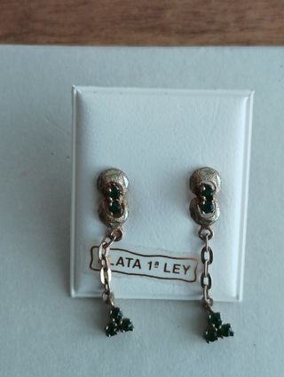 Pendientes de plata con un diseño llamativo y elegante. - Elaborados en plata. - Detalle de piedras verdes. - Diseño colgante.