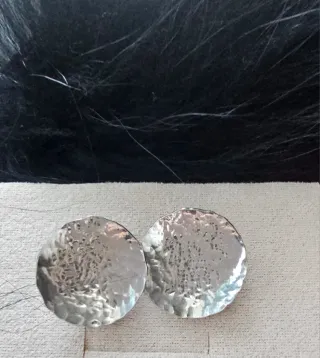 Elegantes pendientes de plata con un diseño martillado. - Acabado texturizado. - Cierre de presión.