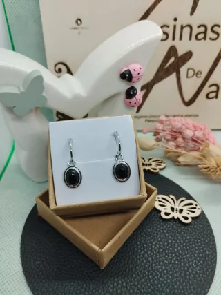 Pendientes de aro en plata 925 y ágata negra. - Diseño ovalado con piedra negrade Ágata. - Cierre de aro seguro. -Medida del aro 12mm aprox. -Medida total 25mm aprox. Se envían en su caja de regalo. Información sin compromiso. Se hacen envíos.