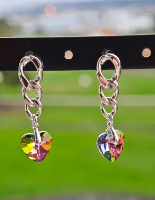 Pendientes con un diseño de corazón. - Colgante en forma de corazón. - Detalles brillantes alrededor del corazón. - Aro plateado.