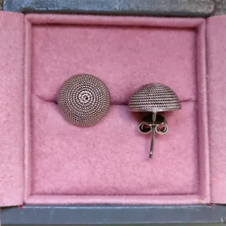 Elegantes pendientes de plata con un diseño circular de cúpula con efecto trenzado. Medida: diámetro 1 ctm No incluye caja.