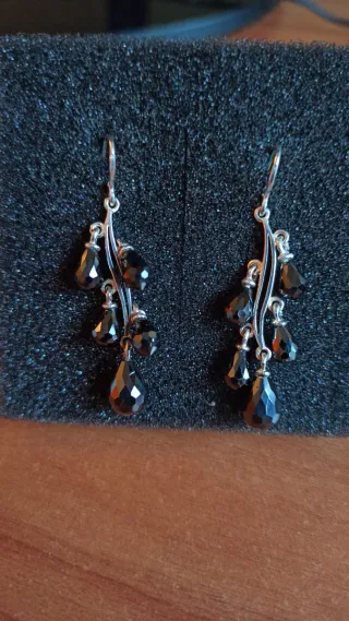 Elegantes pendientes con un diseño delicado y hematíes en forma de lágrima. Preciosos. Sin estrenar. Fue un regalo. - Cierre de anzuelo seguro. - Diseño que aporta movimiento y brillo.