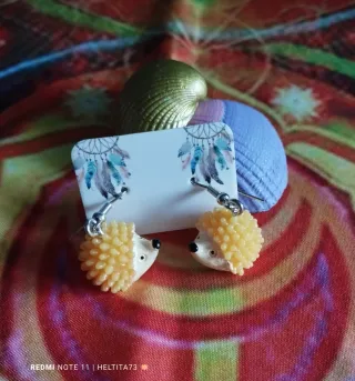 Pendientes plateados con dijes de resina en forma de erizo 🦔🦔, hechos a mano, si se desea se entregan energizados con Reiki ✨⭐ Instagram heltita73 ❤️💕💕
