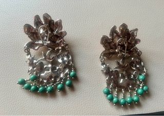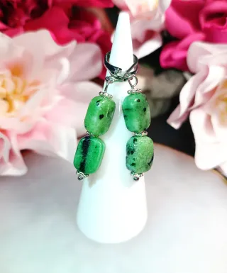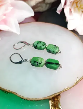 A estrenar. Elegantes pendientes con piedras de epidota natural y detalles en plata. - Piedras de epidota natural de forma irregular (piedra semipreciosa). - Cierre de plata. - Diseño único y llamativo.