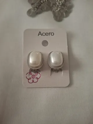Conjunto de pendientes de bisutería. Cada pendiente por separado son 3,90€. - Diseño elegante. - Acabado plateado. - Detalles en blanco.