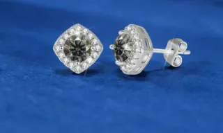 Elegantes pendientes con moissanita central negra y un halo de pequeñas circonitas brillantes. - Moissanita central de medio quilate cada una. Un total de 1 CT. Con certificado Gemológico de autenticidad GRA - Elaborados en plata de ley con su contraste S925 . Cierre de presión mariposa en plata de ley - Diseño con halo de gemas brillantes. En caja de regalo 🎁 y GRA. REGALO presiones de silicona ( un segundo cierre) NO NEGOCIABLE