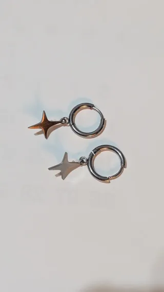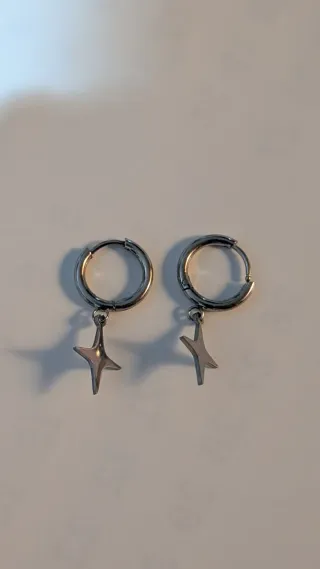 Pendientes de aro con un diseño de estrella colgante. - Fabricados en acero inoxidable. - Acabado plateado.
