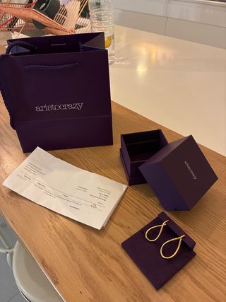 Elegante pendiente de aro con un acabado bañado en oro. Su diseño clásico lo hace perfecto para cualquier ocasión. - Material: Plata con baño de oro. - Peso: 2.43 gramos.