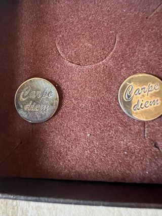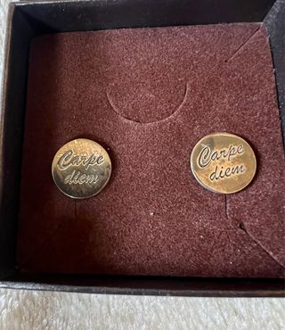 Elegantes pendientes de tuerca con la inscripción Carpe Diem. - Diseño redondo. - Acabado en plata Se entregan con cajita