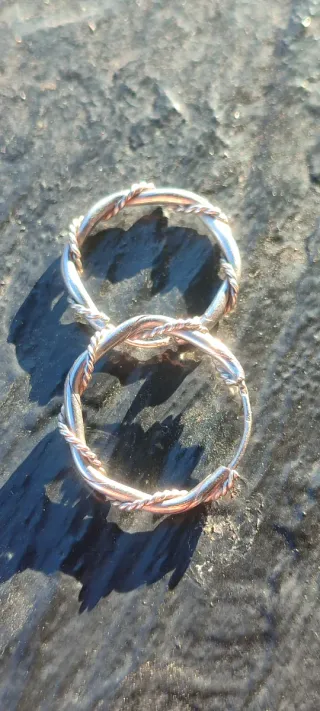 Vendo pendientes arete plata, artesanal en muy buen estado, ver fotos de los detalles terminados de forma no industrial , vintage de mediados de los 90 , forma aro labrado de unos 2 cm de aro interior, ver fotografía de medidas , tiene un contraste en el cierre que aparentemente es de plata , muy bonitos
