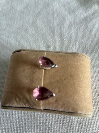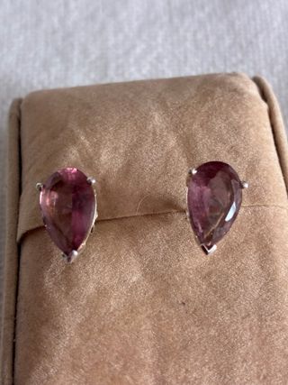 Elegantes pendientes con piedras de Morgatina en forma de lágrima. - Plata de ley. - Piedras de Morgatina de color rosa. - Cierre de presión.