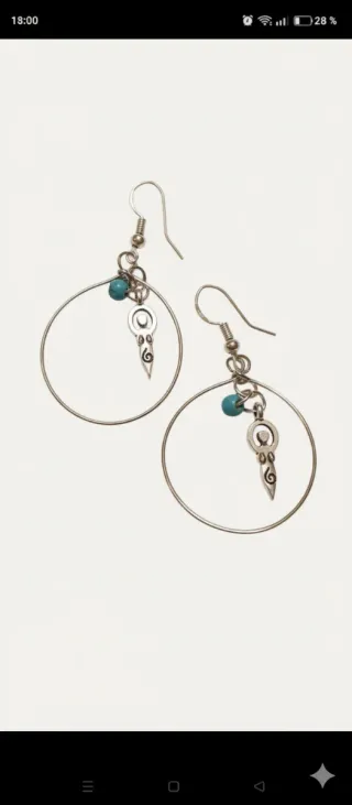Preciosos pendientes de acero, con enganche de plata y pequeña turquesa, representando la Diosa de la fertilidad y la abundancia. Simboliza la fertilidad, el poder femenino y la fuerza. La espiral grabada en el abdomen de la diosa, representa el ciclo de la vida: nacimiento, vida, muerte y renacimiento. A menudo se regala a futuras o nuevas madres, y se utiliza como un recordatorio de la belleza de la vida. Los amuletos de la diosa de la fertilidad se han utilizado en diversas culturas antiguas como talismanes para atraer la fertilidad y la abundancia.