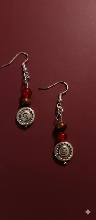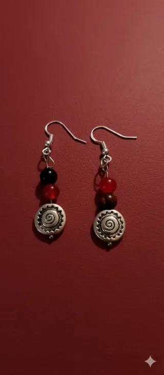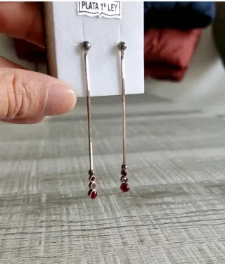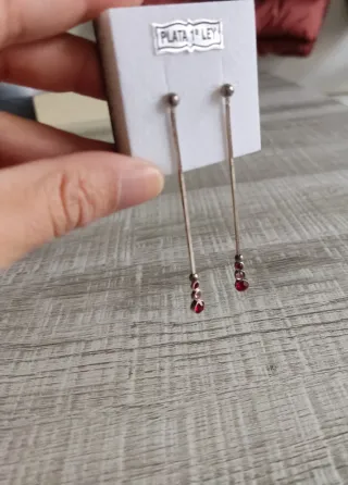 Bonitos pendientes con cuentas rojas y cierres plateados. - Cuentas rojas. - Cierres de plata.