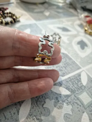 Pendientes de la marca Hold Tos con un diseño elegante. - Acabado en dorado y plateado. - Incluyen colgantes y anillas.