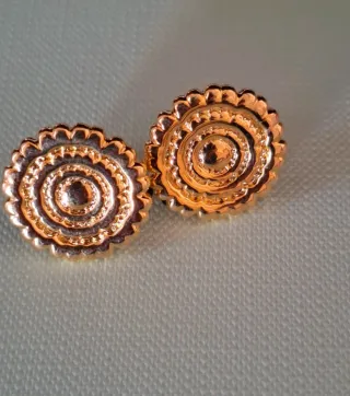 Pendientes con un diseño circular y un acabado texturizado. - Combinación de tonos dorados y plateados. - Diseño llamativo y moderno.