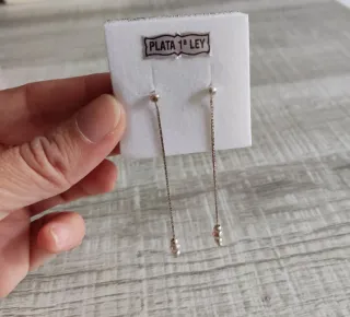 Elegantes pendientes largos con detalle de bolitas. - Fabricados en plata de primera ley. - Diseño colgante con cadena.