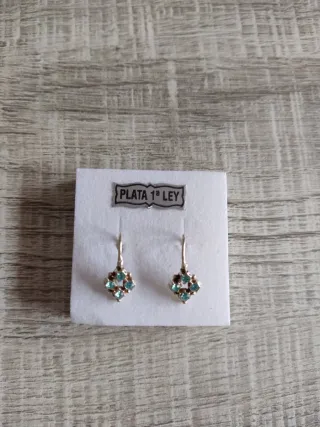 Elegantes pendientes de plata de primera ley con detalles en turquesa. Cierre de gancho.