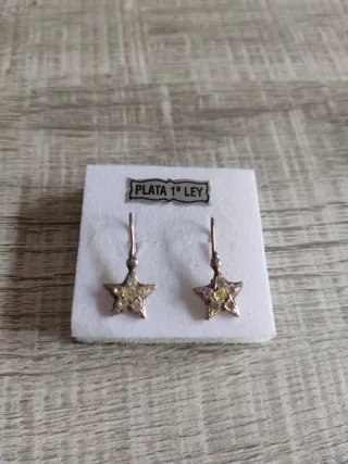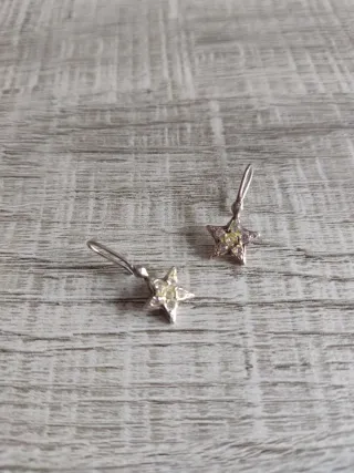 Elegantes pendientes con forma de estrella. - Fabricados en plata de primera ley. - Detalle de pequeñas circonitas amarillas y transparentes.