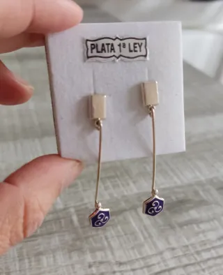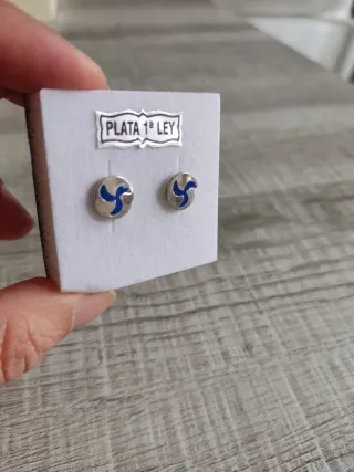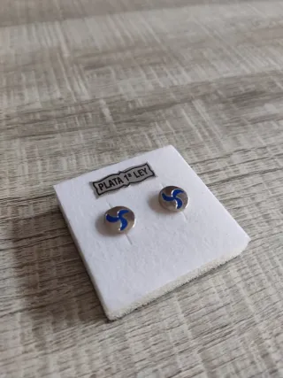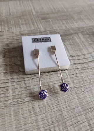 Elegantes pendientes de plata de primera ley con un diseño distintivo. - Diseño con esmalte azul. - Plata 1ª Ley.