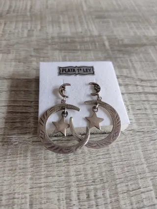 Pendientes con diseño de luna y estrella. Fabricados en plata de 1ª ley.