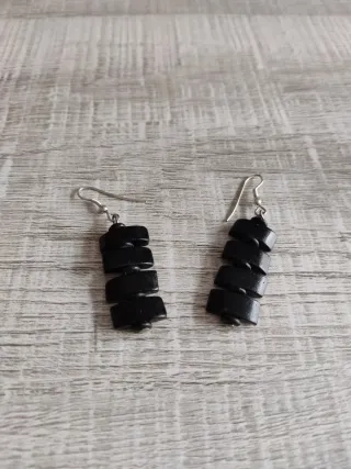 Elegantes pendientes con un diseño moderno. - Cuentas con un acabado en color negro. - Los ganchos son de color plateado. NO SON DE PLATA.
