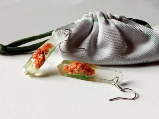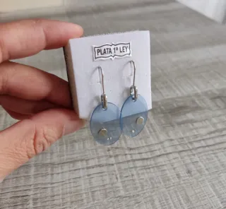 Pendientes colgantes artesanales con detalles en resina y plata. - Cierre de anzuelo de plata - Cuentas decorativas de vidrio - Diseño único.