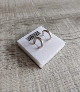 Elegantes pendientes de aro con un diseño moderno. - Acabado plateado brillante. - Cierre seguro y cómodo.