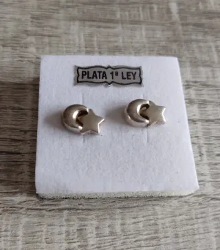 Pendientes de plata con un diseño de luna y estrella. Plata de primera ley.