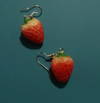 Adorable par de pendientes con de fresa. - Cierre de plata. - Diseño divertido y original. Muy realista ☺️