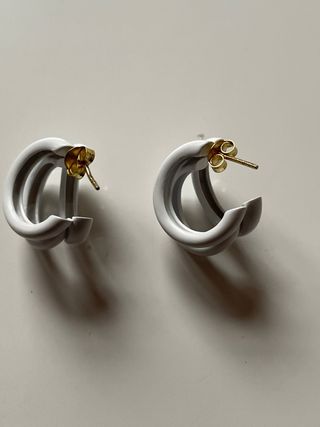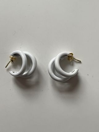 Como nuevos. Plata bañada en oro y esmslte blanco.Miden declargos sñgo menos de 2 cm. Solo envios.
