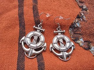 Pendientes plateados con motivos marineros. Gancho con tope de silicona. Largo: 5'5 cm, ancho: 2'9 cm. No pesan