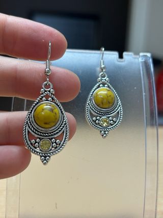 Pendientes plateados con piedra amarilla