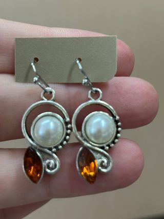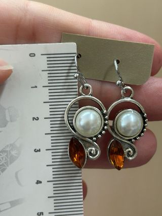 Pendientes perla y ámbar plata