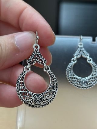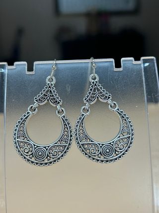 Pendientes con un diseño intrincado y elegante. - Fabricados en aleación de zinc. - Estilo de filigrana. - Cierre de anzuelo.