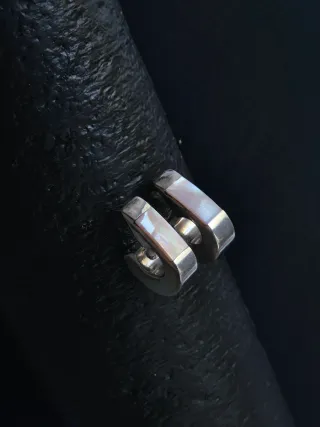 Elegantes pendientes de plata 925 con un diseño moderno y detalles en nacar. - Material: Plata de ley 925. - Diseño: Formas geométricas con incrustaciones de nacar.