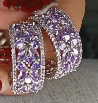 Elegantes pendientes de bisutería con un diseño floral. - Detalle de piedras moradas y plateadas. - Estilo llamativo y moderno.