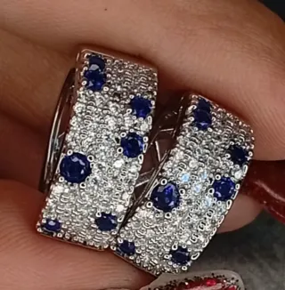Elegantes pendientes de plata con un diseño brillante adornado con zafiros azules. - Diseño con múltiples gemas. - Acabado plateado.