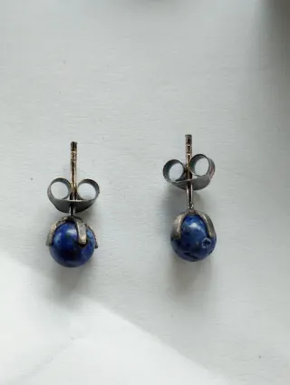 Elegantes pendientes con lapislázuli y detalles en plata. - Piedra lapislázuli natural. - Engarce de plata. La bolita mide unos 8 mm aprox.