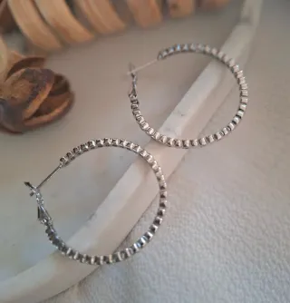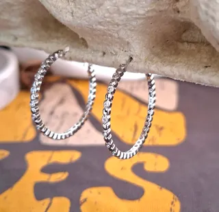 Preciosos aros elaborados en plata y adornados con circonitas. Medidas 4 cm de diámetro - Diseño de aro. - Detalles de circonitas. Con tornillos