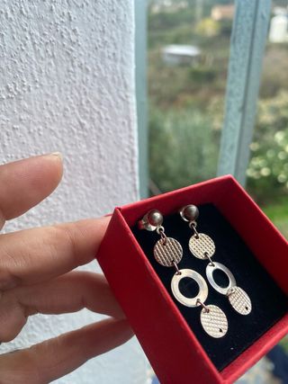 Elegante conjunto de joyería de plata de la marca Luxenter, que incluye un colgante y unos pendientes a juego. - Diseño de estrellas. - Color plata brillante. - Incluye caja de regalo, y bolsa a juego. - Comprado en el corte inglés el año pasado (puedo enviar el ticket regalo).