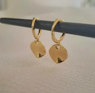 Elegantes pendientes de aro con baño de oro de 18 quilates sobre plata de ley. - Diseño moderno y versátil. - Acabado brillante.