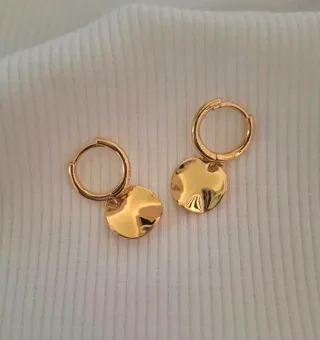 Elegantes pendientes de aro con baño de oro de 18 quilates sobre plata de ley. - Diseño moderno y brillante. - Pequeña circonita incrustada en cada pendiente.