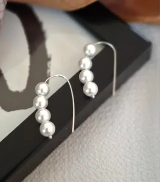 Elegantes pendientes de plata con un diseño delicado. - Cuelgan varias perlas blancas. - Cierre de plata.