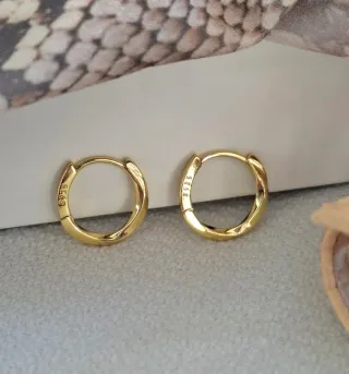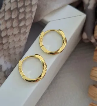 Elegantes pendientes de aro con un diseño retorcido y un baño de oro. - Fabricados en plata de ley 925. - Acabado brillante en tono dorado.