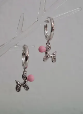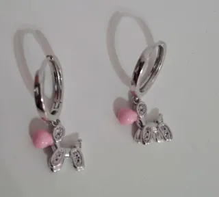 Adorables pendientes con diseño de perrito globo. - Detalle de circonitas. - Bola rosa en el hocico. Plata S925. Envio rapido.