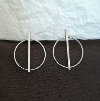 Elegantes pendientes de plata con un diseño moderno. - Aro circular. - Barra vertical. - Cierre de presión.